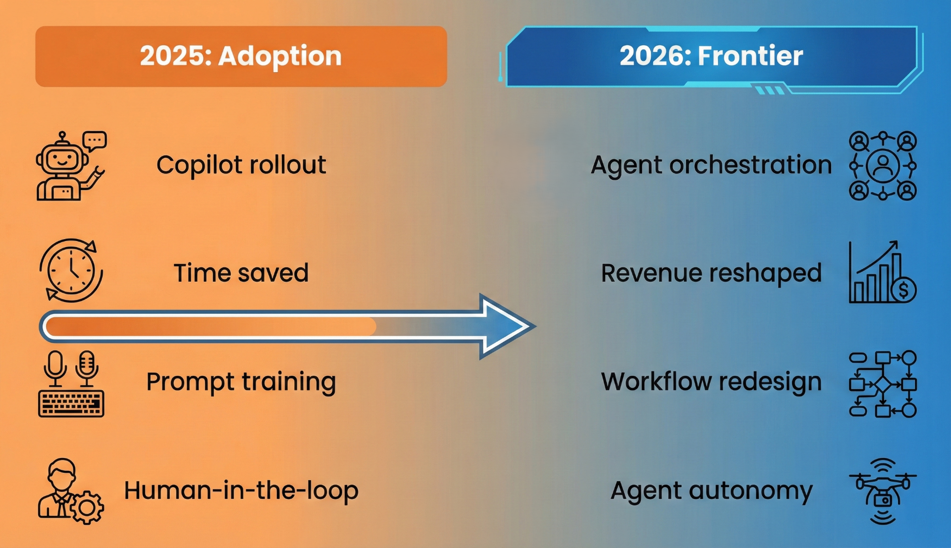 - 2026: "How do we redesign our entire operating model around AI?"