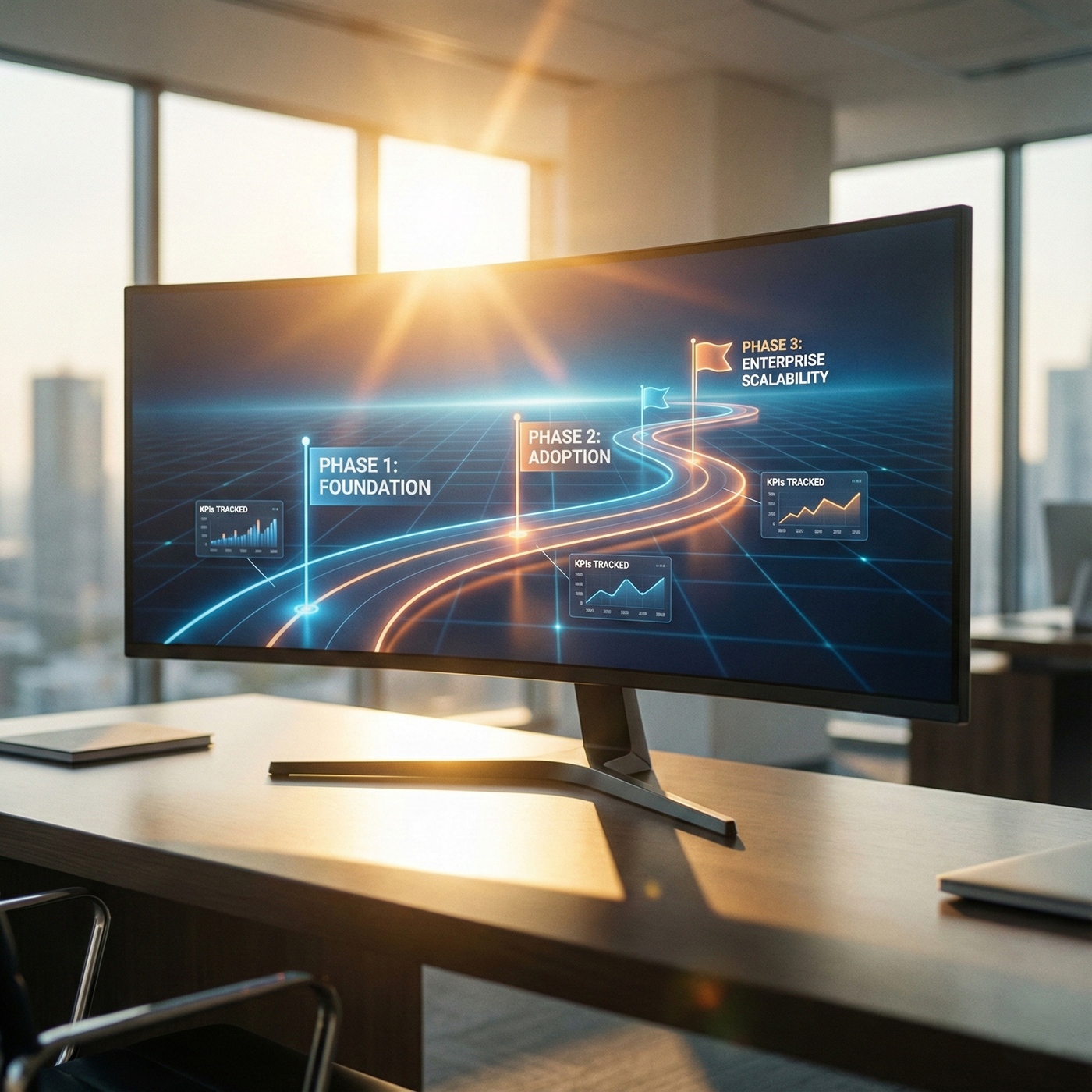We build a phased deployment schedule defining specific KPIs and departmental milestones.