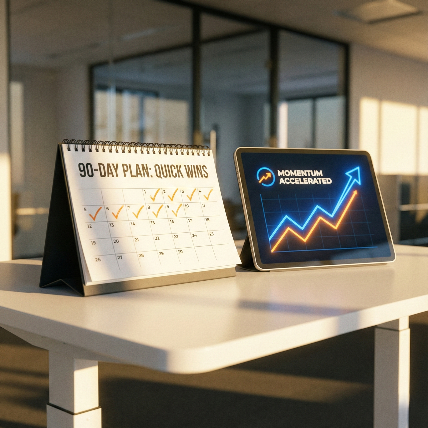 We execute an initial plan focusing on high-priority automations and digital assistants. The goal is to put points on the board quickly with clear ROI.